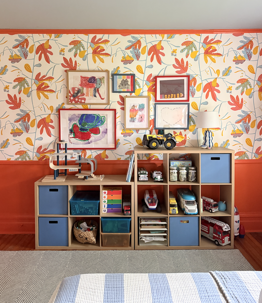 Very, very few 5-year-olds could be as artfully inclined to pick out their own wallpaper, and it is no surprise he picked out a Matisse-inspired leaf pattern. Luckily, we are never lacking in artwork in this household.