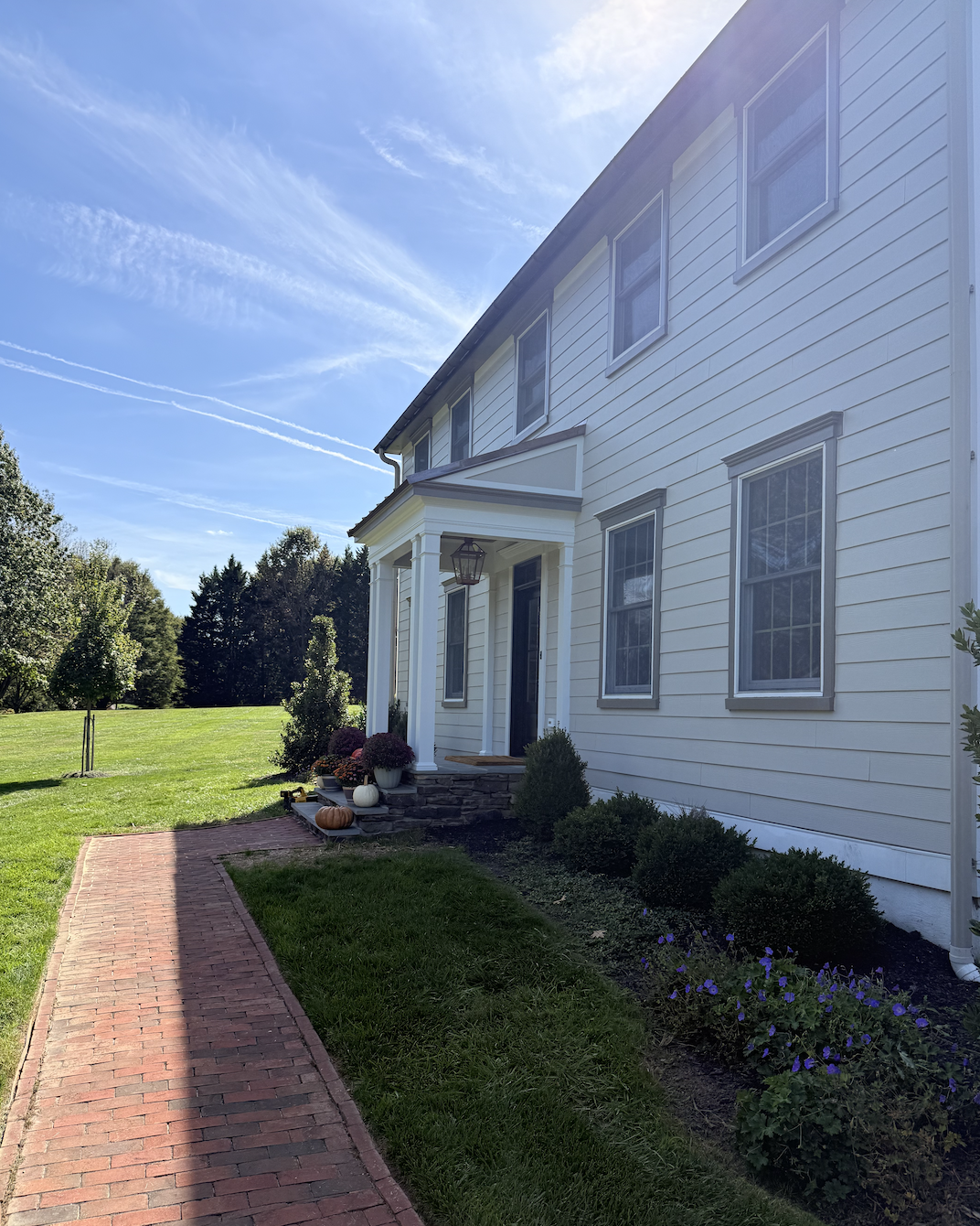 This was our first exterior project and we can’t wait for the next. Working on this home’s exterior was an absolute delight and might have turned into an obsession. The oldest home in the area, it is rooted in history, and our job to bring new interest to the facade while making it look as old as possible. This meant sticking moss into the masonry crevaces, kicking sand on the new bricks to beat them up, and aging the copper roof. Every aspect of the new we wanted to be rooted in old.
